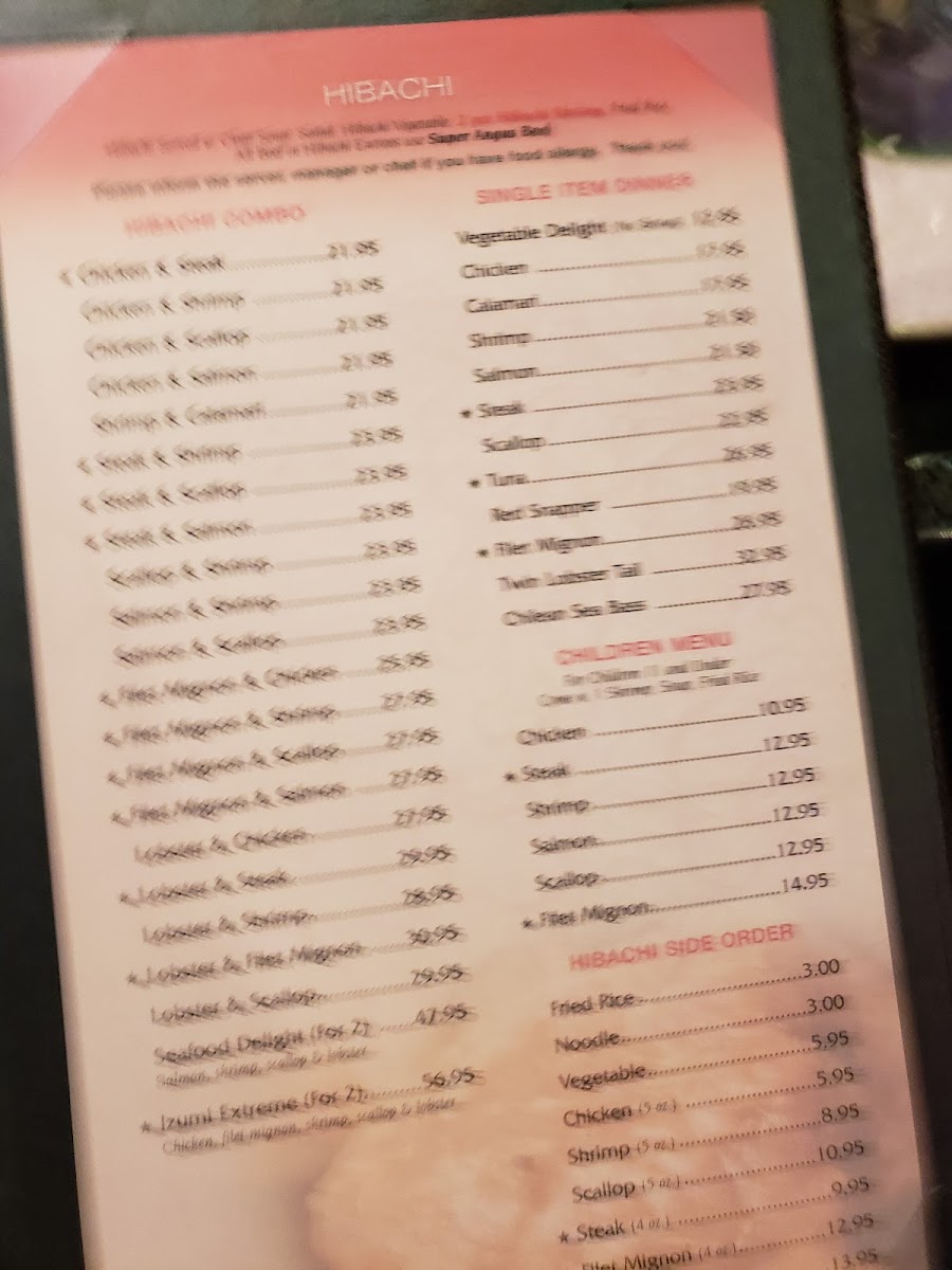 Introducing the Menu at Izumi Sushi & Hibachi